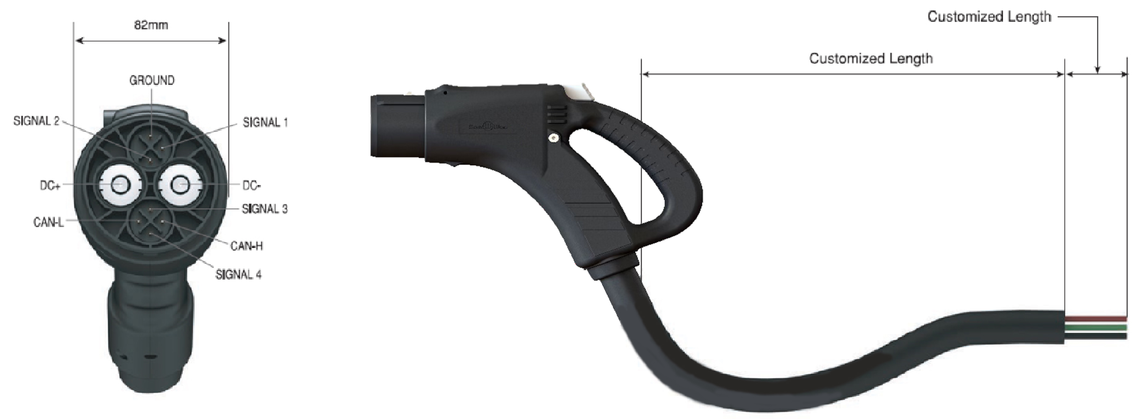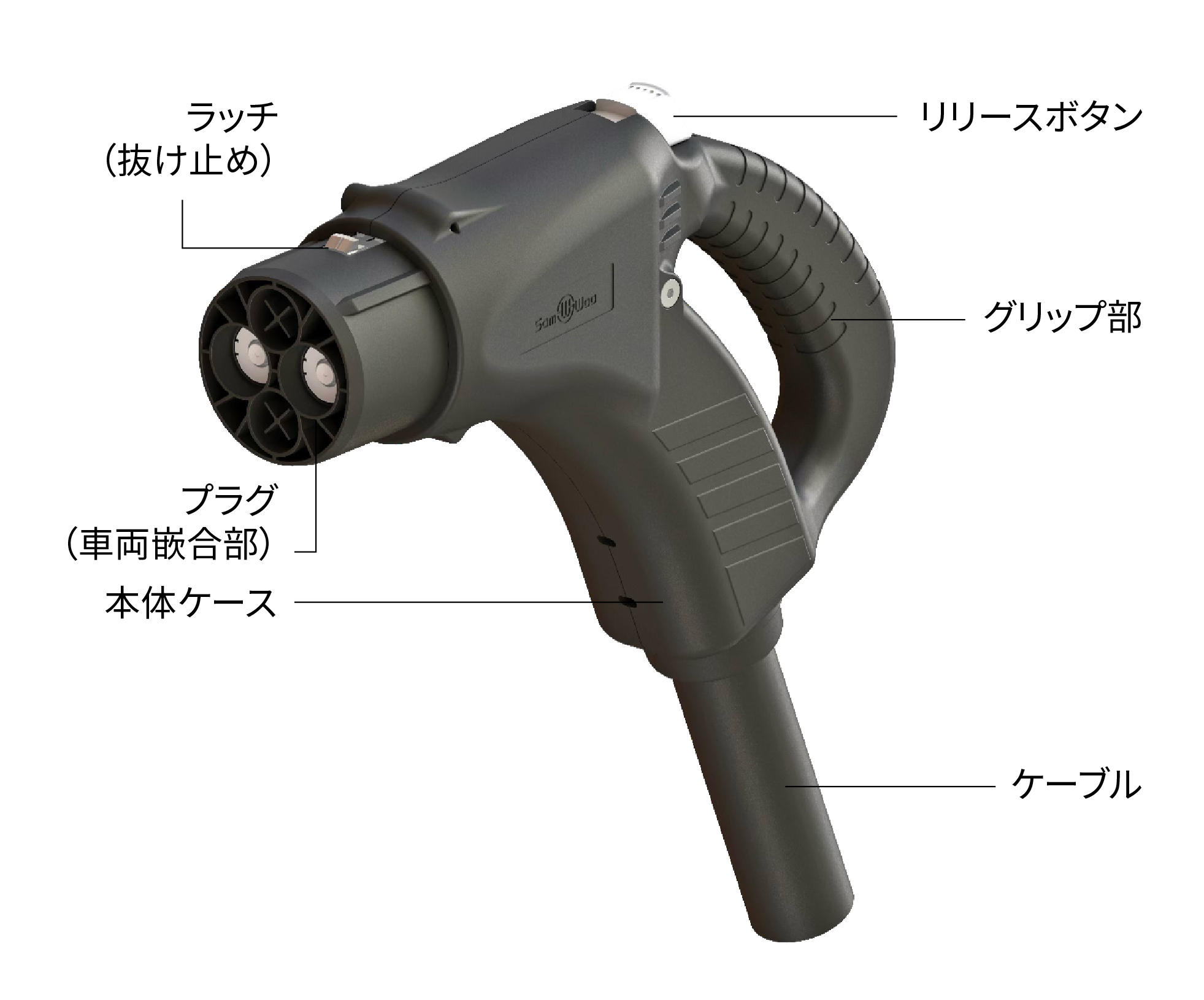 「SW-EVT353」は、IEC 62893-4-1適合のケーブルを採用することにより、ケーブルを軽量、細径化した、日本国内向け初の連続350A/充電電圧1,000Vに対応するEV直流充電器用コネクタ付ケーブルです。